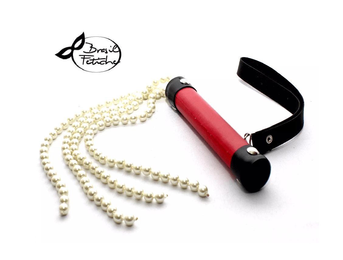 Chicote com base em madeira,revestida de tecido sintético.