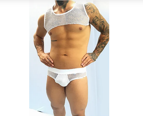 Um conjunto irresistível que combina cueca e cropped confeccionados em suplex e arrastão, proporcionando conforto, estilo e sensualidade. Perfeito para momentos de sedução e diversão.