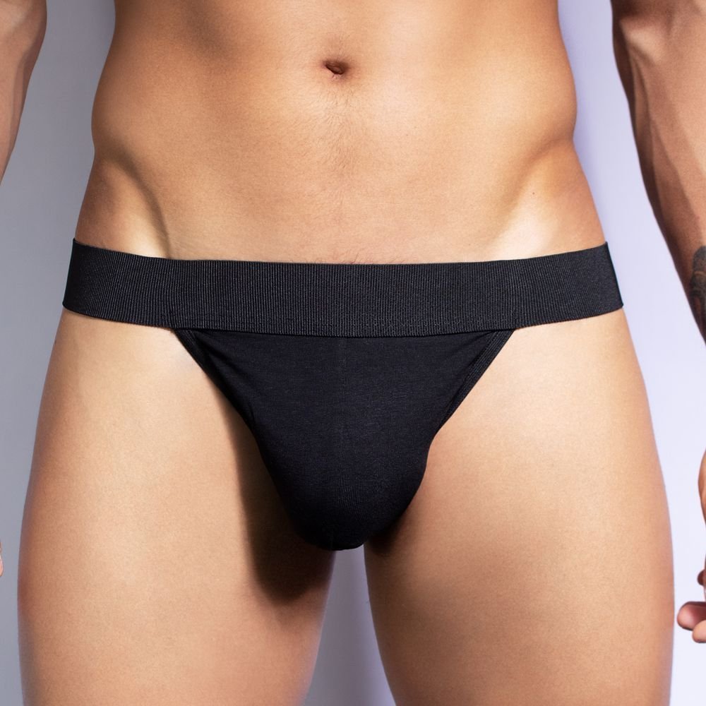 Cueca fio dental masculina, lingerie masculina cavada com frente jockstrap e traseiro com pequeno recorte que entra nas nádegas. Também conhecido como suporte atlético, pode ser usada para a prática de esportes e também para a prática de fetiches eróticos entre homens. Cueca, tanga, jockstrap, lingerie masculina.