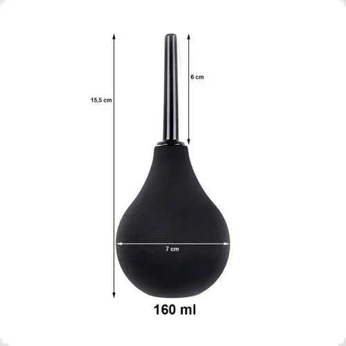 Ducha unissex para limpeza anal e vaginal, composta por um aplicador e bomba para sucção da água.