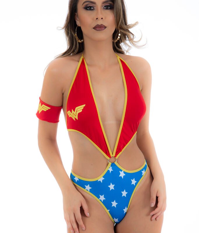 A Fantasia Coelhinha Pimenta Sexy confeccionada em tully com ajustes laterais.