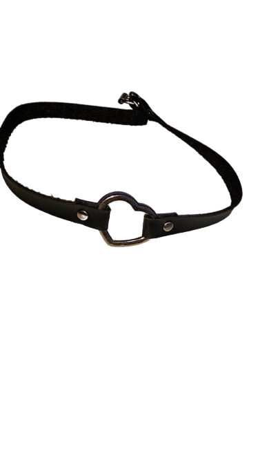 Gargantilha em couro sintético com detalhes em metal. A gargantilha é de tamanho médio, confeccionada em couro sintético, regulagem.