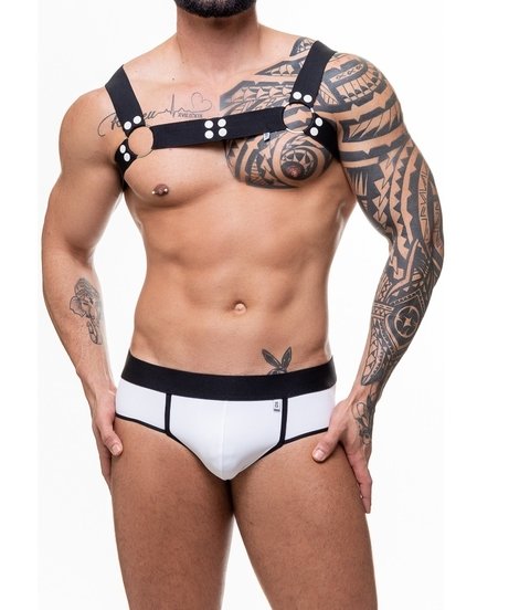 HARNESS ELÁSTICO COM ARGOLAS DETALHE BOTÃO NÍQUEL