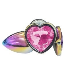 Plug anal de luxo em metal, com formato cônico, feito em aço inoxidável, possui em sua base uma pedra lapidada que lembra um diamante colorido,pode se aproveitar com temperaturas diferentes, coloque-o no freezer para esfriar, ou em uma bacia de água quente para aquecer.