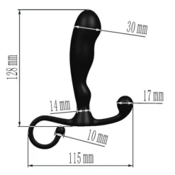 Plug anal de próstata feito de um material plástico rígido e consistente com base que facilita o manuseio.