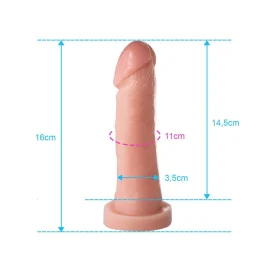 Pênis realístico reto com glande e veias definidas por toda sua extensão. Feito de um material flexível, o pênis é macio ao toque e é confortável para a penetração.