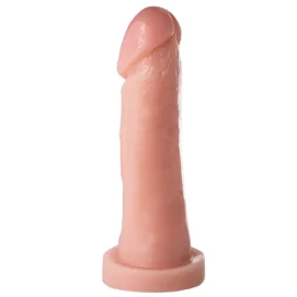 Pênis realístico reto com glande e veias definidas por toda sua extensão. Feito de um material flexível, o pênis é macio ao toque e é confortável para a penetração.