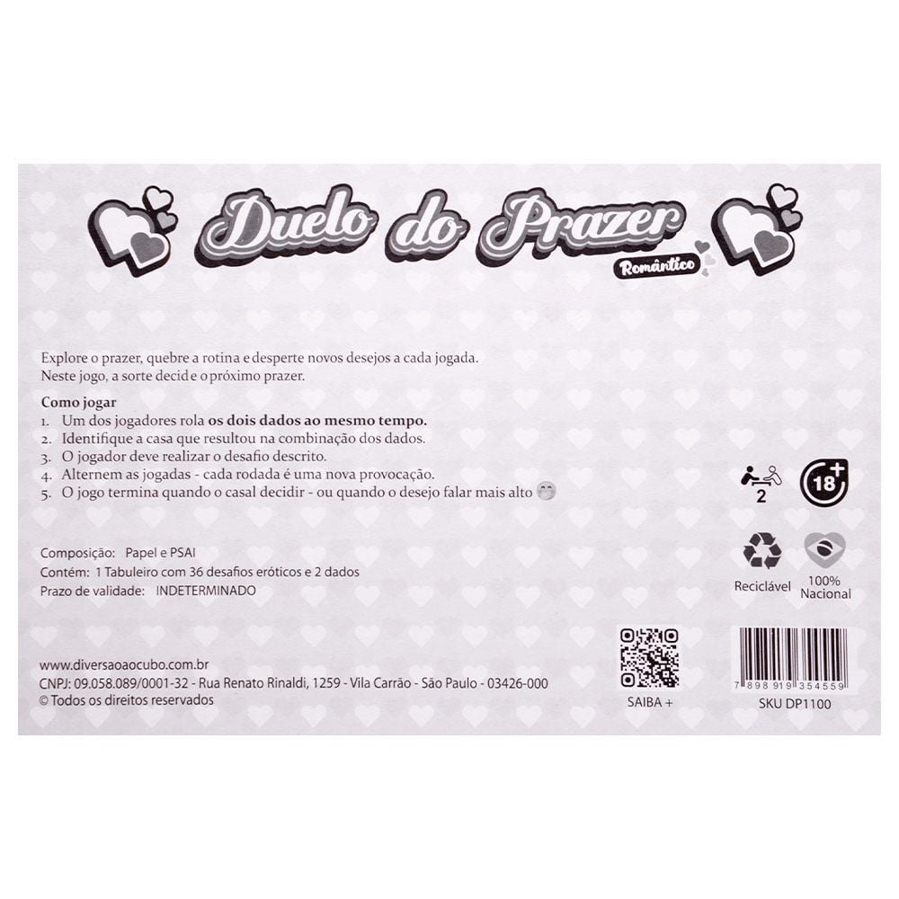 Quebre a rotina e transforme seus momentos a dois em experiências inesquecíveis com o Duelo do Prazer Romântico. Um jogo envolvente que desperta a conexão, a leve provocação e o desejo na medida certa.