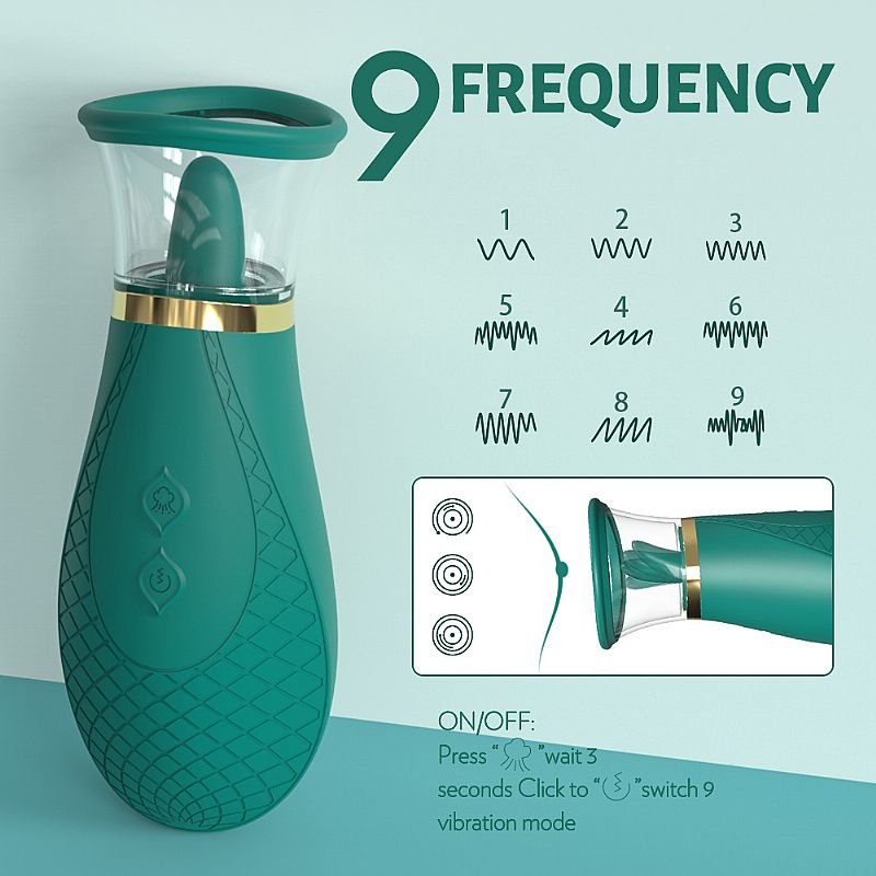 Com 9 funções de vibração, 6 modos de sucção com estímulo de uma língua.