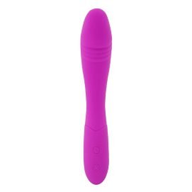 Vibrador ponto G composto por silicone, material macio e com um toque aveludado.